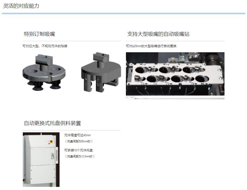1.可貼裝較大尺寸達(dá)100mm×100mm、高達(dá)45mm的元件。